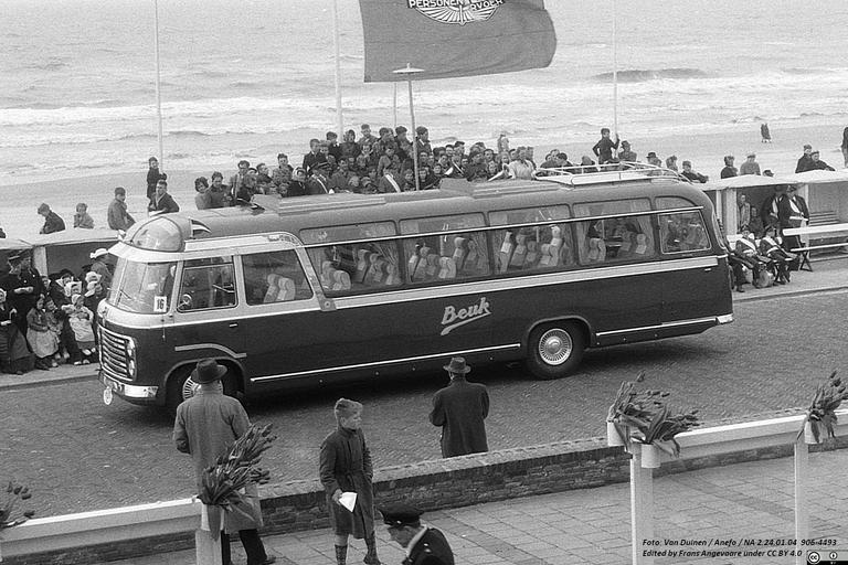 | Keywords: h-1413 h1413 nb-01-46 nb0146 beuk scania-vabis scaniavabis roset noordwijk blackandwhite monochrome outdoor black and white Noordwijk 05-05-1954. Beuk won the first prize at the FNOP Concours d'Elegance from 1954-1957 four times in a row. Here with NB-01-46, a Scania-Vabis / Roset just new and having one of the first (then) new-style registrations. For a short while it had H-14113. Beuk won de 1e prijs op het FNOP Concours d'Elegance in de jaren 1954-1957 4x op een rij, hier met NB-01-46, a Scania-Vabis / Roset, pas nieuw met een (toen) nieuwe stijl kenteken. De bus moet nog kort H-14113 hebben gedragen. Noordwijk 05-05-1954. Beuk won the first prize at the FNOP Concours d'Elegance from 1954-1957 four times in a row. Here with NB-01-46, a Scania-Vabis / Roset just new and having one of the first (then) new-style registrations. For a short while it had H-14113. Beuk won de 1e prijs op het FNOP Concours d'Elegance in de jaren 1954-1957 4x op een rij, hier met NB-01-46, a Scania-Vabis / Roset, pas nieuw met een (toen) nieuwe stijl kenteken. De bus moet nog kort H-14113 hebben gedragen. |