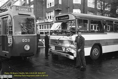 | Keywords: ub-50-37 ub5037 cn mk maarse & kroon maarsekroon centraal nederland centraalnederland leyland royal tiger royaltiger worldmaster lert verheul vehicle outdoor Amsterdam 29-10-1962. Maarse & Kroon UB-50-37 (192) and GVBA tram 528 had an unscheduled meeting at the corner of Stadionweg and Amstelveenseweg. The bus ia a Leyland Royal Tiger Worldmaster LERT 1/1 / Verheul new in July 1961 that later was with Centraal Nederland until November 1977. Maarse & Kroon UB-50-37 (192) en GVBA tram 528 hebben een onverwachte ontmoeting gehad op de hoek van de Stadionweg en de Amstelveenseweg. De bus is een Leyland Royal Tiger Worldmaster LERT 1/1 / Verheul new in juli 1961 die nog bij Centraal Nederland reed tot november 1977. Amsterdam 29-10-1962. Maarse & Kroon UB-50-37 (192) and GVBA tram 528 had an unscheduled meeting at the corner of Stadionweg and Amstelveenseweg. The bus ia a Leyland Royal Tiger Worldmaster LERT 1/1 / Verheul new in July 1961 that later was with Centraal Nederland until November 1977. Maarse & Kroon UB-50-37 (192) en GVBA tram 528 hebben een onverwachte ontmoeting gehad op de hoek van de Stadionweg en de Amstelveenseweg. De bus is een Leyland Royal Tiger Worldmaster LERT 1/1 / Verheul new in juli 1961 die nog bij Centraal Nederland reed tot november 1977. |
