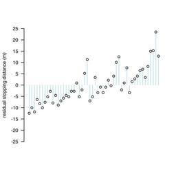 | Keywords: R-car stopping distances 1920+null-resids.svg en A plot of residuals from a null linear model fit of car stopping distances Own HYanWong 2009-01-19 Created with R using the following commands <pre> svg R-car_stopping_distances_1920+null-resids svg 4 4 8 plot residuals null model type h ylim c -25 25 yaxp c -25 25 10 bty n xaxt n las 2 xlab NA ylab residual stopping distance m col lightblue points residuals null model dev off </pre> Uncategorized 2015 March 23 | ||||