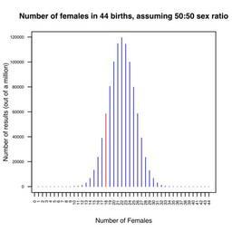 | Keywords: R-gender in 44 births-simulation.svg simulation svg 4 4 8 par las 2 cex axis 0 65 plot tabulate rbinom 1000000 44 0 5 44 col a<-rep blue 44 ;a18<- red ;a type h main Number of females in 44 births assuming 50 50 sex ratio ylab Number of results out of a million xlab Number of Females xaxp c 0 44 44 dev off </pre> Own HYanWong 2008-11-14 SVG bar charts |