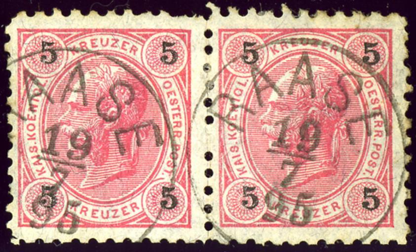 | Keywords: Raase 1895 Rasova.jpg en Austrian KK 5 kreuzer pair cancelled at RAASE Silesia Czech Republic in1895 2012-11-20 14 37 44 own Jacquesverlaeken Scanned object >100 years old Razová cc-zero Uploaded with UploadWizard Postmarks of Czech lands before 1918 1890 stamps of Austria Postmarks uncategorised by city |