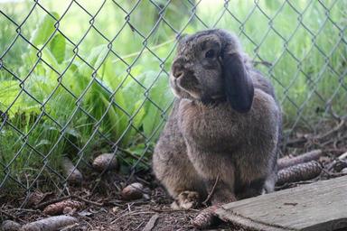 Keywords: rabbit animal hare brown fur grass fence