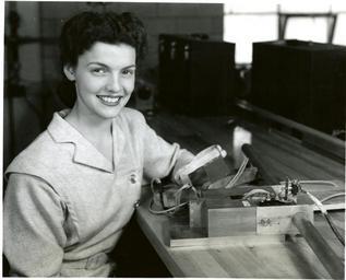 | Keywords: RabinowJacob 034.jpg Circa 1947-1950 Close-up of the apparatus used to test the hlding power of energized iron particle-in-oil mixture MBS staff member Patricia Hickok is shown holding the 2-inch square plate which is immersed in a magnetic fluid filling the chamber between the pole pieces of the electromagnet assembly on the bench in front of her When 10 watts of power are supplied to the coil the plate will sustain a pull of 200 pounds without moving The chains that develop when the magnetic coil is energized are shown in NBS photo 1500 Jacob Rabinow invented the Magnetic Particle Clutch in 1947 during his work on ordnance at the National Bureau of Standards The particle clutch used a mixture of light lubricating oil and powdered carbonyl iron inside a chamber connecting two free spinning plates When an electromagnet attached to the chamber was energized the iron particles would magnetize and attract each other producing an almost solid mass which locked the plates together Controlling the magnetic flux would control the amount of torque between the plates Because Rabinow invented the Magnetic Particle Clutch as part of his work at the National Bureau of Standards the United States Government owned the U S patent However in partnership with his brother Joseph Rabinow did file for patents in 22 foreign countries Due of the simple design precise torque control smooth operation and long life the device found wide application It was used in Renault and Subaru automobiles in Europe and Japan in airplane controls and in the disc file of the IBM RAMAC computer Reference Inventing for Fun and Profit Jacob Rabinow San Francisco Press San Francisco CA 1990 pp 49-55 National Institute of Standards and Technology National Institute of Standards and Technology PD-USGov-NIST PD-USGov National Bureau of Standards Magnetic_particle_clutches Women at work in the 20th century |