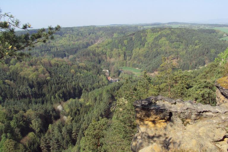 Keywords: Rač výhlídka.jpg cs Vyhlídka z okraje kopce Rač směrem na západ katastr Deštná u Dubé Kokořínsko own Zákupák 2011-04-24 50 30 32 27 N 14 30 11 461 E region CZ Rač Deštná