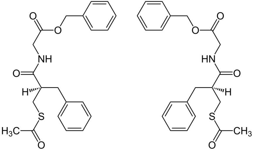 Keywords: Racecadotril Structural Formulea V.1.svg en RS -Racecadotril_Structural_Formulea de RS -Racecadotril_Strukturformel own Jü 2012-04-07 Racemate Gastrointestinal system drugs Thioesters Benzyl esters Cc-zero