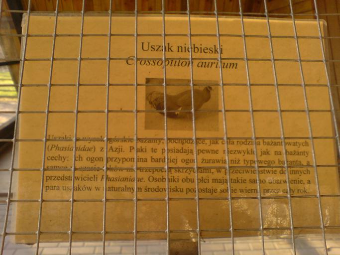 Keywords: Racibórz mini-zoo tabliczka uszak niebieski.jpg pl Mini zoo w Raciborzu - tabliczka przy klatce z uszakiem niebieskim 2009-04-02 own Olos88 cc-zero Uploaded with UploadWizard Mini-zoo in Racibórz