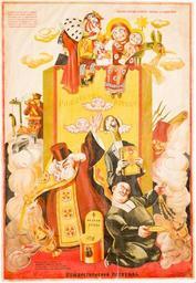 | Keywords: Radakov, A. Christmas Jester 1929.jpg Union of Militant Atheists This organization's motto was The fight against religion is the fight for Socialism and this appears in the upper right corner Petrushka is a common jester puppet in Russian puppet folk theater http //www liveauctioneers com/item/9207863 Alexei Radakov 1929 PD-Russia-2008 Atheism posters in the Soviet Union Anti-religious campaign in the Soviet Union | ||||