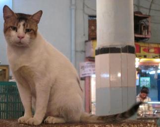 | Keywords: 'Radhe' the biggest cat in Worli Fish Market in Mumbai..jpg en Radhe is a pet cat of all the fish vendors and meat shop owners in Worli Fish Market of Mumbai Akin to Kingkong he towers over the rest of the common stray market cats A bizarre freak of his species own Rudolph A Furtado Friday 4-1-2013 Sitting cats Cc-zero |
