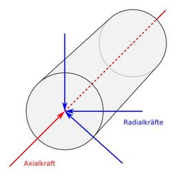 Keywords: Radial- und Axialkräfte.svg de Skizze von Axial- und Radialkräften an einem Rotationskörper own Rohieb 2016-05-09 Based on File Achsial-und Radialkräfte Skizze png Cc-zero Mechanics