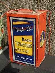 | Keywords: Radio 'B' Battery, 22.5 volts, Sears, Roebuck & Co. - National Electronics Museum - DSC00233.JPG en Exhibit in the National Electronics Museum 1745 West Nursery Road Linthicum Maryland USA All items in this museum are unclassified The museum permitted photography without restriction 2014-07-21 14 52 54 own Daderot cc-zero Uploaded with UploadWizard Miscellany in the National Electronics Museum History of electric batteries Portable vacuum tube radio batteries Sears Roebuck batteries Sears Roebuck and Company |