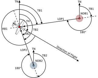 | Keywords: Radio Fix on 2 Stations.svg A diagram showing how two radio stations blue and red can be used to find the position at the intersection of two Lines of Position LOP of an aircraft Key is below self-made Inkscape 0 45 12/01/2008 Inductiveload TN True North - TH True Heading - TB1 True Bearing To Station 1 NDB1 - TB2 True Bearing To Station 2 NDB1 - RB1 Relative Bearing To Station 1 - RB2 Relative Bearing To Station 2 - LOP1 Line of Position between plane and Station 1 - LOP2 Line of Position between plane and Station 2 Radio navigation |