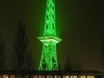Keywords: radio tower berlin night green illuminated lighting neon green neon light