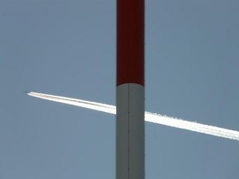 Keywords: radio tower radio mast greened transmission tower aircraft contrail fly travel back light sky