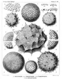| Keywords: Radiolaria (Challenger) Plate 012.jpg follows <table> <tr> <td style text-align center; vertical-align top; colspan 3 >Plate 12 Orosphærida Astrosphærida et Liosphærida </td> </tr> <tr> <td style font-size 85 ; text-align right; vertical-align top; colspan 3 >Diam </td> </tr> <tr> <td style vertical-align top; >Fig 1 Orosphæra huxleyii n sp vel Oroscena huxleyii </td> <td style vertical-align bottom; >×</td> <td style text-align right; vertical-align bottom; >50</td> </tr> <tr> <td style font-size 85 ; padding-left 3em; text-indent -1em; vertical-align top; >Fig 1a A piece of the network the bars of which contain partly an axial canal </td> <td style vertical-align bottom; >×</td> <td style text-align right; vertical-align bottom; >200</td> </tr> <tr> <td style vertical-align top; >Fig 2 Conosphæra orthoconus n sp </td> <td style vertical-align bottom; >×</td> <td style text-align right; vertical-align bottom; >200</td> </tr> <tr> <td style vertical-align top; >Fig 3 Conosphæra platyconus n sp </td> <td style vertical-align bottom; >×</td> <td style text-align right; vertical-align bottom; >300</td> </tr> <tr> <td style vertical-align top; >Fig 4 Conosphæra plagioconus n sp </td> <td style vertical-align bottom; >×</td> <td style text-align right; vertical-align bottom; >300</td> </tr> <tr> <td style vertical-align top; >Fig 5 Ethmosphæra conosiphonia n sp </td> <td style vertical-align bottom; >×</td> <td style text-align right; vertical-align bottom; >400</td> </tr> <tr> <td style font-size 85 ; padding-left 3em; text-indent -1em; vertical-align top; >Fig 5a Vertical section through the wall </td> </tr> <tr> <td style vertical-align top; >Fig 6 Ethmosphæra polysiphonia n sp </td> <td style vertical-align bottom; >×</td> <td style text-align right; vertical-align bottom; >400</td> </tr> <tr> <td style vertical-align top; >Fig 7 Cenosphæra compacta n sp </td> <td style vertical-align bottom; >×</td> <td style text-align right; vertical-align bottom; >300</td> </tr> <tr> <td style vertical-align top; >Fig 8 Cenosphæra elysia n sp </td> <td style vertical-align bottom; >×</td> <td style text-align right; vertical-align bottom; >300</td> </tr> <tr> <td style font-size 85 ; padding-left 3em; text-indent -1em; vertical-align top; >Fig 8a Vertical section through the wall </td> </tr> <tr> <td style vertical-align top; >Fig 9 Cenosphæra mellifica n sp </td> <td style vertical-align bottom; >×</td> <td style text-align right; vertical-align bottom; >300</td> </tr> <tr> <td style vertical-align top; >Fig 10 Cenosphæra favosa n sp </td> <td style vertical-align bottom; >×</td> <td style text-align right; vertical-align bottom; >300</td> </tr> <tr> <td style font-size 85 ; padding-left 3em; text-indent -1em; vertical-align top; >Fig 10a Vertical section through the wall </td> </tr> <tr> <td style vertical-align top; >Fig 11 Cenosphæra vesparia n sp </td> <td style vertical-align bottom; >×</td> <td style text-align right; vertical-align bottom; >300</td> </tr> <tr> <td style font-size 85 ; padding-left 3em; text-indent -1em; vertical-align top; >Fig 11a Vertical section through the wall </td> </tr> </table> https //archive org/details/reportonradiolar00haecrich 1887 Ernst Haeckel 1834-1919 ; engravings by Adolf Giltsch 1852-1911 PD-old-auto-1923 1919 Report on the Radiolaria |