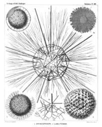 | Keywords: Radiolaria (Challenger) Plate 020.jpg follows <table> <tr> <td style text-align center; vertical-align top; colspan 3 >Plate 20 Liosphærida et Astrosphærida </td> </tr> <tr> <td style font-size 85 ; text-align right; vertical-align top; colspan 3 >Diam </td> </tr> <tr> <td style vertical-align top; >Fig 1 Drymosphæra dendrophora n sp </td> <td style vertical-align bottom; >×</td> <td style text-align right; vertical-align bottom; >300</td> </tr> <tr> <td style font-size 85 ; padding-left 3em; text-indent -1em; vertical-align top; >Fig 1a Meridional section through the central capsule In the centre the large spherical nucleus is visible The protoplasm around it is distinctly radiate From the central capsule arise numerous club-shaped apophyses or cæcal sacs which are protruded through the meshes of the inner shell </td> <td style vertical-align bottom; >×</td> <td style text-align right; vertical-align bottom; >300</td> </tr> <tr> <td style font-size 85 ; padding-left 3em; text-indent -1em; vertical-align top; >Fig 1b Basal part of a single radial spine and its connection with the network of the two shells </td> <td style vertical-align bottom; >×</td> <td style text-align right; vertical-align bottom; >400</td> </tr> <tr> <td style vertical-align top; >Fig 2 Liosphæra polypora n sp </td> <td style vertical-align bottom; >×</td> <td style text-align right; vertical-align bottom; >300</td> </tr> <tr> <td style font-size 85 ; padding-left 3em; text-indent -1em; vertical-align top; >The greater part of the outer shell is removed </td> </tr> <tr> <td style vertical-align top; >Fig 3 Liosphæra hexagonia n sp </td> <td style vertical-align bottom; >×</td> <td style text-align right; vertical-align bottom; >400</td> </tr> <tr> <td style vertical-align top; >Fig 4 Carposphæra melitomma n sp vel Melitomma melittosphæra </td> <td style vertical-align bottom; >×</td> <td style text-align right; vertical-align bottom; >400</td> </tr> </table> https //archive org/details/reportonradiolar00haecrich 1887 Ernst Haeckel 1834-1919 ; engravings by Adolf Giltsch 1852-1911 PD-old-auto-1923 1919 Report on the Radiolaria |