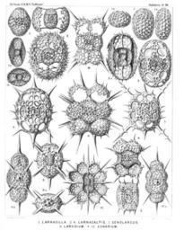 | Keywords: Radiolaria (Challenger) Plate 050.jpg follows <table> <tr> <td style text-align center; vertical-align top; colspan 3 >Plate 50 Larcarida Larnacida et Zonarida </td> </tr> <tr> <td style font-size 85 ; text-align right; vertical-align top; colspan 3 >Diam </td> </tr> <tr> <td style vertical-align top; >Fig 1 Larnacilla typus n sp </td> <td style vertical-align bottom; >×</td> <td style text-align right; vertical-align bottom; >300</td> </tr> <tr> <td style font-size 85 ; padding-left 3em; text-indent -1em; vertical-align top; >From the sagittal pole dorsal view </td> </tr> <tr> <td style font-size 85 ; padding-left 3em; text-indent -1em; vertical-align top; >Fig 1a From the lateral pole sagittal section </td> </tr> <tr> <td style font-size 85 ; padding-left 3em; text-indent -1em; vertical-align top; >Fig 1b From the principal pole equatorial section </td> </tr> <tr> <td style vertical-align top; >Fig 2 Larnacalpis lentellipsis n sp </td> <td style vertical-align bottom; >×</td> <td style text-align right; vertical-align bottom; >400</td> </tr> <tr> <td style font-size 85 ; padding-left 3em; text-indent -1em; vertical-align top; >From the sagittal pole dorsal view </td> </tr> <tr> <td style font-size 85 ; padding-left 3em; text-indent -1em; vertical-align top; >Fig 2a From the lateral pole sagittal section </td> </tr> <tr> <td style font-size 85 ; padding-left 3em; text-indent -1em; vertical-align top; >Fig 2b From the principal pole equatorial section </td> </tr> <tr> <td style vertical-align top; >Fig 3 Larnacalpis triaxonia n sp </td> <td style vertical-align bottom; >×</td> <td style text-align right; vertical-align bottom; >400</td> </tr> <tr> <td style font-size 85 ; padding-left 3em; text-indent -1em; vertical-align top; >From the sagittal pole dorsal view </td> </tr> <tr> <td style vertical-align top; >Fig 4 Larnacantha hexacantha n sp </td> <td style vertical-align bottom; >×</td> <td style text-align right; vertical-align bottom; >400</td> </tr> <tr> <td style font-size 85 ; padding-left 3em; text-indent -1em; vertical-align top; >From the sagittal pole dorsal view </td> </tr> <tr> <td style vertical-align top; >Fig 5 Larnacantha bicruciata n sp </td> <td style vertical-align bottom; >×</td> <td style text-align right; vertical-align bottom; >300</td> </tr> <tr> <td style font-size 85 ; padding-left 3em; text-indent -1em; vertical-align top; >Frontal view </td> </tr> <tr> <td style vertical-align top; >Fig 6 Larnacantha prismatica n sp </td> <td style vertical-align bottom; >×</td> <td style text-align right; vertical-align bottom; >300</td> </tr> <tr> <td style font-size 85 ; padding-left 3em; text-indent -1em; vertical-align top; >Half frontal half lateral view </td> </tr> <tr> <td style vertical-align top; >Fig 7 Cenolarcus primordialis n sp </td> <td style vertical-align bottom; >×</td> <td style text-align right; vertical-align bottom; >300</td> </tr> <tr> <td style font-size 85 ; padding-left 3em; text-indent -1em; vertical-align top; >From the sagittal pole </td> </tr> <tr> <td style font-size 85 ; padding-left 3em; text-indent -1em; vertical-align top; >Fig 7a From the lateral pole </td> </tr> <tr> <td style font-size 85 ; padding-left 3em; text-indent -1em; vertical-align top; >Fig 7b From the principal pole </td> </tr> <tr> <td style vertical-align top; >Fig 8 Larcidium dodecanthum n sp </td> <td style vertical-align bottom; >×</td> <td style text-align right; vertical-align bottom; >300</td> </tr> <tr> <td style font-size 85 ; padding-left 3em; text-indent -1em; vertical-align top; >From the sagittal pole </td> </tr> <tr> <td style font-size 85 ; padding-left 3em; text-indent -1em; vertical-align top; >Fig 8a From the principal pole </td> </tr> <tr> <td style vertical-align top; >Fig 9 Zonarium octangulum n sp </td> <td style vertical-align bottom; >×</td> <td style text-align right; vertical-align bottom; >300</td> </tr> <tr> <td style font-size 85 ; padding-left 3em; text-indent -1em; vertical-align top; >Frontal view </td> </tr> <tr> <td style vertical-align top; >Fig 10 Zoniscus tetracanthus n sp </td> <td style vertical-align bottom; >×</td> <td style text-align right; vertical-align bottom; >300</td> </tr> <tr> <td style font-size 85 ; padding-left 3em; text-indent -1em; vertical-align top; >Frontal view </td> </tr> <tr> <td style vertical-align top; >Fig 11 Zoniscus hexatholius n sp </td> <td style vertical-align bottom; >×</td> <td style text-align right; vertical-align bottom; >400</td> </tr> <tr> <td style font-size 85 ; padding-left 3em; text-indent -1em; vertical-align top; >Dorsal view from the sagittal pole </td> </tr> <tr> <td style font-size 85 ; padding-left 3em; text-indent -1em; vertical-align top; >Fig 11a Lateral view from the frontal pole </td> </tr> <tr> <td style vertical-align top; >Fig 12 Zonidium octotholium n sp </td> <td style vertical-align bottom; >×</td> <td style text-align right; vertical-align bottom; >300</td> </tr> <tr> <td style font-size 85 ; padding-left 3em; text-indent -1em; vertical-align top; >Frontal section from the sagittal pole </td> </tr> <tr> <td style font-size 85 ; padding-left 3em; text-indent -1em; vertical-align top; >Fig 12a Lateral view from the frontal pole </td> </tr> </table> https //archive org/details/reportonradiolar00haecrich 1887 Ernst Haeckel 1834-1919 ; engravings by Adolf Giltsch 1852-1911 PD-old-auto-1923 1919 Report on the Radiolaria |