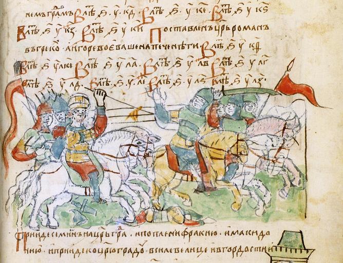 | Keywords: RadzivillChronicleFol21ra.jpg  Радзивилловская летопись л 21r детайл  иниатю а Mиниатю а п едставляет битва болга ского ца я Симеона с византийцами 914 или война Иго я с печенегами Tекст из Радзивиловской летописи а болга е со г екы ступишася и пе есечени быша г екы Симеон же п иа г ад Онд ень а Иго е воеваше на печенеги см также Х оника Гео гия Ама тола; Ист ин В  Книгы в еменыя и об азныя Гео гия  ниха Х оника Гео гия Ама тола в д евнем славяно усском пе еводе http //ksana-k narod ru/kodex/amartol html Т 1 Текст исслед и слова ь Пг 1920 ст 545-546; Иванова Кл  иколова Св Тъ жество на Словото Златният Век на Бълга ската Книжнина http //www kroraina com/knigi/zv/zv6_5 html VI Летописни тво би Гео ги Ама атол В еменник Лите ату а Кукушкина Радзивиловская летопись Текст Исследование Описание миниатю ст 310 Igors's gegen die Petschenegen Text aus der Radziwiłł-Chronik die Bulgaren aber schlugen sich mit den Griechen und die Griechen wurden niedergemacht Simeon aber nahm die Stadt Ondren ein  Igor führte Krieg gegen die Petschenegen Graßhoff Freydank Sturm Rauchspur der Tauben Radziwiłł-Chronik S 51 en Radziwiłł Chronicle from the Middle Ages unknown century 15 <gallery> File RadzivillChronicleFol21r jpg </gallery> PD-Art Details of Radzivill Chronicle Simeon I of Bulgaria Bulgarians in Medieval art Igor the Old in miniature Pechenegs |
