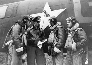 | Keywords: RAF Chelveston - 305th Bombardment Group - First raid on Germany.jpg Airmen of the 306th Bomb Group discuss their last mission in front of their B-17 Flying Fortress Passed as censored 29 Jan 1943 Handwritten caption on reverse '303 or 306 ' Printed caption on reverse 'First American Raid On Germany Flying Fortresses and Liberators of the U S Army Air Corps carried out their first raid on Germany Wednesday last O P S left to right - Sgt William Fleming Burdine KY ; 1st Lt Jon R Schueler Milwakee Wis ; T/Sgt Edward J Doughty Philadepha Penn ; T/Sgt Waldo B Brandt Denver Ind ' On reverse Ministry of Information Barratt's Photo Press US Army Press Agency ETO and US Army General Section Press Censorship Bureau Stamps United States Army Air Forces 1943 Second World War FRE 4419 5262 http //www americanairmuseum com/media/5262 This image was created and released by the Imperial War Museum on the http //www iwm org uk/corporate/privacy-copyright/licence IWM Non Commercial Licence Photographs taken or artworks created by a member of the forces during their active service duties are covered by Crown Copyright provisions Faithful reproductions may be reused under that licence which is considered expired 50 years after their creation photographs PD-USGov Uploaded with UploadWizard RAF Chelveston 305th Bombardment Group United States Army Air Forces |