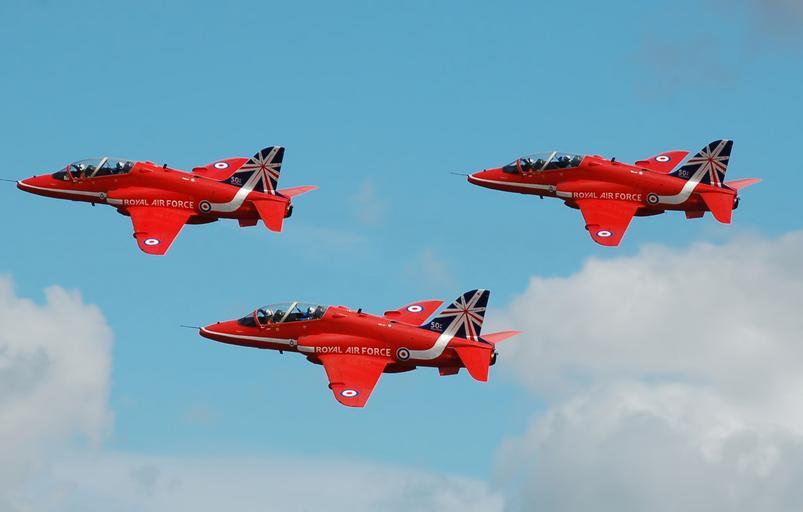 | Keywords: RAF Red Arrows depart RIAT Fairford 14thJuly2014 arp.jpg The RAF Red Arrows aerobatic display team depart Fairford England after the 2014 Royal International Air Tattoo They are in a colour scheme that commemorates their 50th year My own photograph taken with a Nikon D50 DSLR and an 18-200mm Nikon lens Taken 14th July 2014 Myself Adrian Pingstone arpingstone 2014 Royal International Air Tattoo BAE Hawk Red Arrows Red aircraft BAE Hawk T1/T2 Royal Air Force | ||||