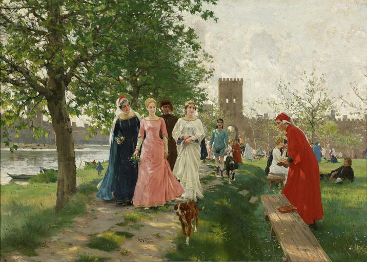 | Keywords: Raffaello Sorbi - Dante incontra Beatrice.jpg  Artwork Creator Raffaello Sorbi 1903 cm object history exhibition history credit line Raf Sorbi 1903 ~ lower center text accession number place of creation http //dante-a com/dante-i-beatriche-dante-i-dzhemma/3/ Web - http //dante-a com/wp-content/uploads/2011/10/raffaello-sorbi-dante-meets-beatrice-1903 jpg image Custom license marker 2014 05 07 PD-old-auto 1931 Uploaded with UploadWizard Raffaello Sorbi Dante and Beatrice Paintings of Dante Alighieri Museo de Arte Italiano Paintings with signatures center Encounters |