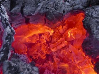Keywords: raging fire dangerous hot burning blaze glow wood logs forest waste close-up