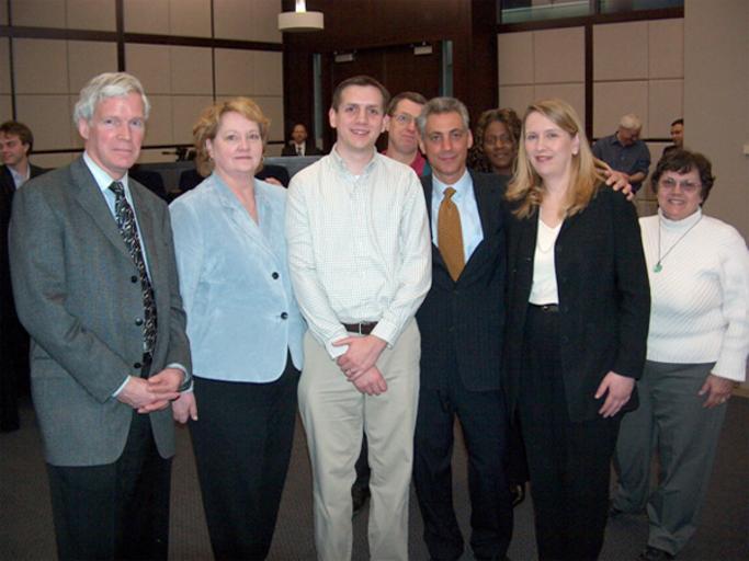| Keywords: Rahm Emanuel at at Northwestern University Law School..jpg en Congressman Rahm Emanuel joined by IRS Commissioner Mark Everson far left and fellow constituents to talk about tax policy at Northwestern University Law School http //www house gov/emanuel/photo_070410tax htm Office of United States Rep Rahm Emanuel D - Illinois 2007-04-10 PD-USGov Rahm Emanuel Northwestern University Mark Everson | ||||