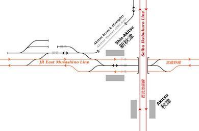 | Keywords: Rail Tracks map between JR-E Shin-Akitsu and Seibu Akitsu Station.svg Rail tracks map around JR East Shin-Akitsu Station and Seibu Railway Akitsu Station in Higashimurayama Tokyo Japan Reference material Masashi Takahashi Tokyo SOTOKANJŌSEN Junction DENKISHA KENKYUKAI THE RAILWAY PICTORIAL Tetsudō Pictorial Japanese Magazine Vol 58-9 No 808 2008-9 Page 49 Figure 4 DENKISHA KENKYUKAI THE RAILWAY PICTORIAL Tetsudō Pictorial Japanese Magazine Vol 716 2002-04 Extra edition - 西武鉄道 Seibu Railway insert page at end 京都 山市にあるJR 日 新秋津駅と西武鉄道秋津駅の鉄道配線略図 参 文献: 高橋政士 京外環状線ジャンクション 電気車研究会 鉄道ピクトリアル 巻第808号(第58巻第9号) 2008年9 号 49頁 図-4 電気車研究会 鉄道ピクトリアル 巻第716号 2002年4 臨時増刊号 特集 - 西武鉄道 巻 折込 西武鉄道 配線略図 (2001年12 15日現 ) 凡例は駅配線図テンプレートを参照 Plan de voies Created with Text Editor Tawashi2006 created from icons in Category Rail_tracks_map_template 2010-03-07 Tawashi2006 with http //kiritachinoboru tripod com/pdv2svg_en html pdv2svg Tawashi2006 validSVG translation possible Shin-Akitsu Station Akitsu Station Tokyo Rail track diagrams of JR East train stations Rail track diagrams of Seibu Railway train stations |