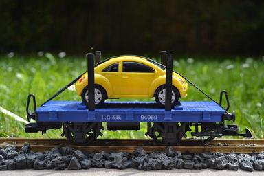 Keywords: railway lgb track 1 flat wagons autotransporter vw beetle model railway garden railway