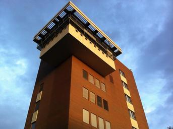 Keywords: railway signal box muttenz evening sky building clinker window clouds architecture switzerland