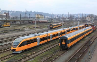 | Keywords: 643-05 643-06 RJSK Praha Smichov.jpg cs 10 ledna 2015 přepravila lokomotiva 162 120 z Děčína do Prahy-Smíchova dvojici motorových vozů VT 643 05 a VT 643 06 v červeno-bílo-modrých barvách Prignitzer Eisenbahn O necelé dva týdny později už byly ve žluté barvě s nápisy RJSK Bratislava a tabulkou Preh 'Nstz'09 01 15 V pozadí osobní vlak s legendární Bardotkou en On January 10 2015 locomotive 162 120 transported diesel units 643 05 and 643 06 in red-white-blue livery of Prignitzer Eisenbahn from Děčín to Praha-Smíchov Two weeks later the diesel units were in yellow livery with markings RJSK Bratislava Preh 'Nstz'09 01 15 In the background a passenger train with legendary Bardotka from ČKD de Bahnhof Prag-Smichov VT 643 05 und VT 643 06 mit Markierung RJSK Bratislava und Tabelle Preh 'Nstz'09 01 15 Im hintergrund Personenzug mit die legendäre Bardotka aus ČKD 2015-01-24 16 32 30 own JanSuchy other versions 50 3 41 681 N 14 24 23 094 E heading SE cc-zero Uploaded with UploadWizard Bombardier Talent of RegioJet Praha-Smíchov train station 2015 in rail transport in the Czech Republic |