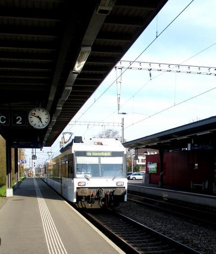 Keywords: railway station train regional train exit platform clock station clock amriswil thurgau switzerland