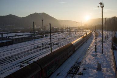 Keywords: railway sunset winter in the evening