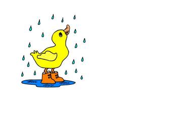 Keywords: rain duck puddle boots water bird cute animal raindrops yellow colorful cartoon