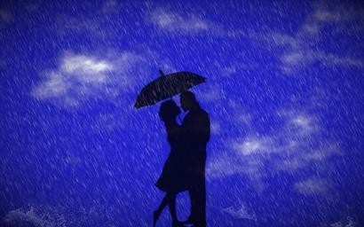 Keywords: rain man woman clouds lovers wet umbrella silhouette