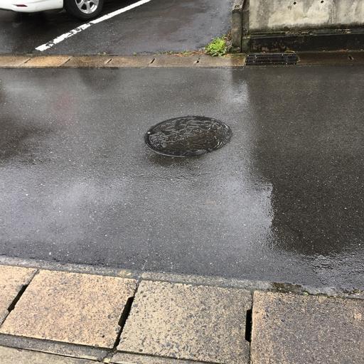 Keywords: rain rainy the manhole road on the roadside asphalt