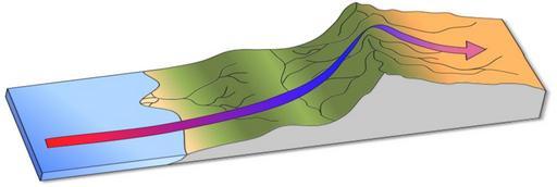 | Keywords: Rain Shadow Effect caused by Orographic Lift.png en Adiabatic cooling by rising air masses occurs in one of two ways upward convection or movement up a physical barrier see figure The global scale atmospheric convections cells Hadley Ferrell and Polar cause air masses to rise generating precipitation due to adiabatic cooling As an air mass reaches the continent from an ocean or other large body of water the air mass is forced upward in a process known as orographic lift If the rise of continent is great enough the air mass will lose all or nearly all of its moisture as precipitation on the windward side of the mountain chain As the air passes over the mountain chain it is stripped of its moisture creating very dry conditions on the leeward side of the mountain This process is known as the rain shadow effect and is responsible for creating some of the world ™s driest deserts Chile ™s Atacama Desert is the driest desert in the world due to a double rain shadow effect from two very tall mountain chain some rain stations have never received measurable precipitation The Sahara Desert is actually made much drier due the the presence of two rain shadow effects as well Rain shadow deserts in N American include the Mohave Great Basin Sonoran and Chihuahuan deserts 2015-03-03 own Thebiologyprimer other versions cc-zero Uploaded with UploadWizard Rain shadow Adiabatic process Wind diagrams |