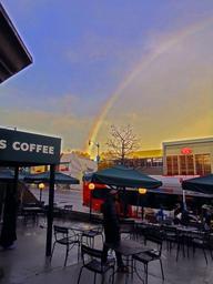 | Keywords: rainbow starbucks unmbrella bus outdoor Rain had just halted and people were coming out from under the Starbucks' umbrellas to board the bus at sunset; end of the workday. Rain had just halted and people were coming out from under the Starbucks' umbrellas to board the bus at sunset; end of the workday. |