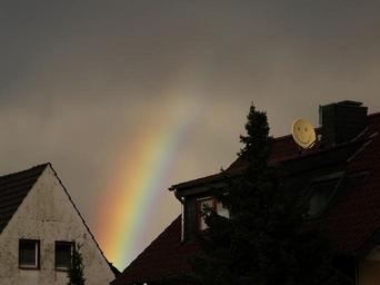 Keywords: rainbow colorful color sky roof homes satellite dish