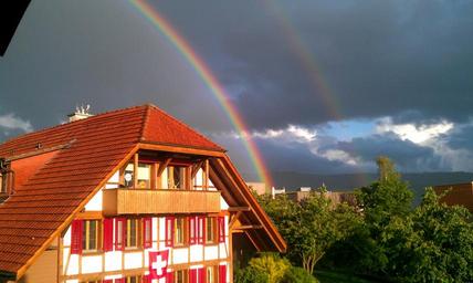 Keywords: rainbow fachwerkhaus weather nature mood homes double rainbow