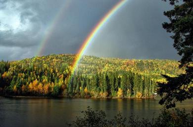 Keywords: rainbow landscape fall lake mountain nature sky colors