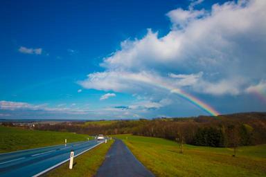Keywords: rainbow landscape sky nature double rainbow double clouds blue rainy sunny sun way trip travel austria field outdoor spring rainbow sky rural nature landscape tree natural colorful day