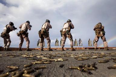 | Keywords: Rainbow Rifle Range (9785926721).jpg Marines with Command Element 31st Marine Expeditionary Unit fire assault rifles at intended targets on the flight deck of the USS Bonhomme-Richard during live fire training Sept 16 2013 The 31st MEU regularly performs live fire training to improve tactical skills and maintain the readiness of the 31st MEU during its summer deployment U S Marine Corps photo by Cpl Michael S Oxton/Released https //www flickr com/photos/marine_corps/9785926721/ Rainbow Rifle Range 2013-09-16 08 56 https //www flickr com/people/40927340 N03 Marines from Arlington VA United States PD-USGov United States Marine Corps Official Page https //flickr com/photos/40927340 N03/9785926721 2016-09-03 22 14 54 United States Government Work Blue Contrast Flak Amphibious forces |