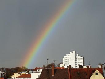 Keywords: rainbow weather phenomenon sky rain city homes rainbow colors spre spectrum refraction natural phenomenon spectacular farbenspiel