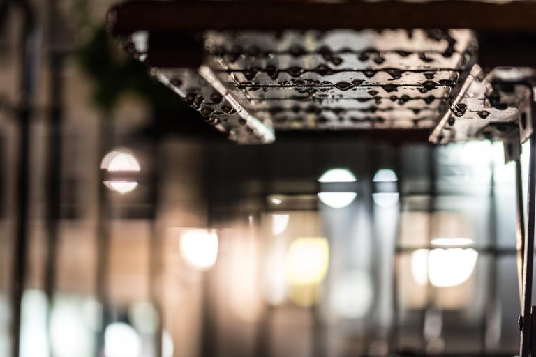 Keywords: raindrops table bokeh depth of field reflection surface tension city night