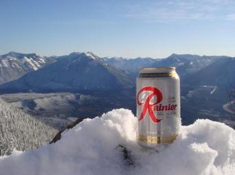 Keywords: Rainierbeercan.jpg en Photo of Rainier Beer atop Mt Si Winter 2008 Personal Photo Cougfan2000 2008-12-15 Check categories 2009 November 5 en wikipedia Rainier_Brewing_Company 1 Rainier Brewing Company