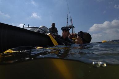 | Keywords: Raising the sunken former Soviet submarine Juliett 484 080619-N-RL404-137.jpg en U S Army soldiers from the U S Army Dive Company out of Fort Eustis Va attach a turbidity curtain to the oil boom that surrounds the worksite of a sunken former Soviet submarine The curtain will contain the mud and silt that will be disturbed during the re-floating phase of the training exercise U S Navy and Army Divers along with federal state and local authorities participate in a joint service operation to raise the sunken former Soviet submarine Juliett 484 at Collier Point Park in Providence RI Mobile Diving and Salvage Unit TWO Company TWO ONE MDS CO 2-1 US Army Dive Company and NAVSEA OOC Support Unit prepare to salvage the former Soviet submarine that sank at her mooring point in about 30 feet of water during a noreaster which struck Providence in April of 2007 This training exercise is part of the DoDs Innovative Readiness Training IRT program Through IRT military divers receive training by taking part of real-world community-based projects IRT and civil-military projects improve military readiness and help rebuild America U S Navy Photo by Mass Communication Specialist 1st Class Eric Lippmann/Released 2008-06-19 Chief Petty Officer Eric Lippmann https //www dvidshub net/image/1476431 080619-N-RL404-137 2014-08-01 18 00 PROVIDENCE RI US PD-USGov-Military-Navy United States Navy Mobile Diving and Salvage Unit Two Fort Eustis Images from DoD uploaded by Fæ |
