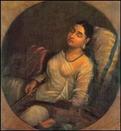 View Original:Raja_Ravi_Varma,_Lady_Resting_on_the_Pillow.jpg (605x653)