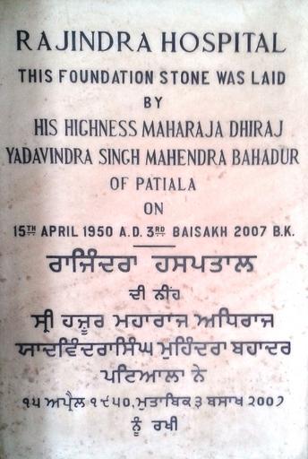 | Keywords: Rajindra Hospital, Patiala - Foundation 1950.jpg en Foundation stone of Rajindra Hospital Patiala Punjab India was laid by His Highness Maharaja Dhiraj Yadavindra Singh Mahendra Bahadur of Patiala on 15th April 1950 A D 3rd Baisakh 2007 B K 2014-03-19 17 28 57 own Toakashdeep 30 328227 76 382331 cc-zero Uploaded with UploadWizard Hospitals |