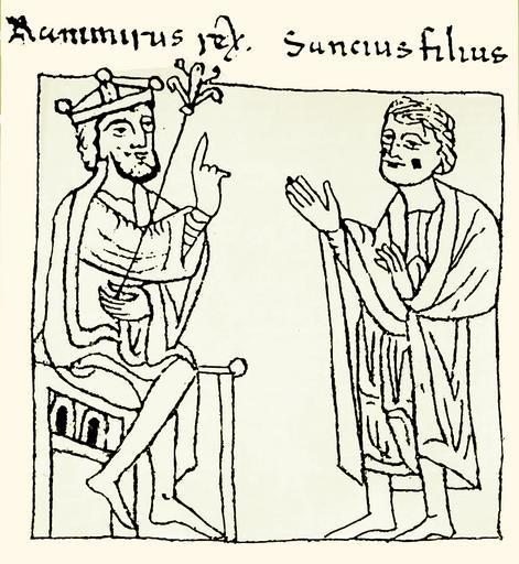 | Keywords: Ramiro I y Sancho Ramírez.jpg es Ramiro I de Aragón y su hijo Sancho Ramírez Miniatura del siglo XIII de Jaca Huesca Aragón España http //www derechoaragones es/es/catalogo_imagenes/grupo cmd posicion 63 path 1457 config_zoom S presentacion pagina Author siglo XIII Ramiro I coloreado jpg Ramiro I of Aragon in miniature Sancho Ramírez in miniature PD-Art europe in the 13th century | ||||