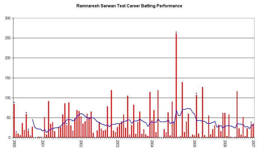 MAKE A MEME View Large Image Ramnaresh Sarwan graph.png Test Match performance of Ramnaresh Sarwan It was created by Raven4x4x The red bars indicate the player's test match innings while the blue line shows the average of the ten most recent innings at that point Note ...